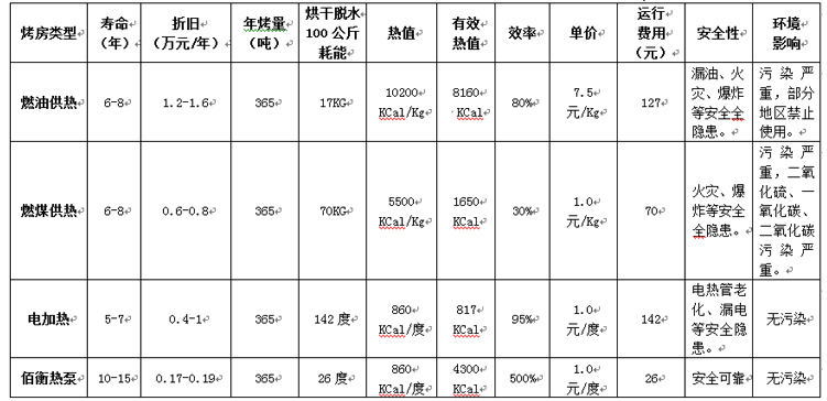傳統烤房與佰衡高(gāo)溫熱泵烤房運行對比