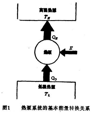 按熱力學(xué)第二定律的(de)概念,或者按人們的(de)常識,熱量是不會自(zì)動從低(dī)溫區向高(gāo)溫區傳遞的(de),因此,熱泵要完成自(zì)己的(de)工作就必須加入一(yī)部分有用能量,以幫助這種熱量的(de)傳遞。圖1描繪了一(yī)個熱泵系統的(de)基本能量轉換關系。