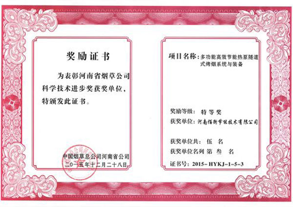 13--河南省煙草(cǎo)公司科學(xué)技術進步特等獎